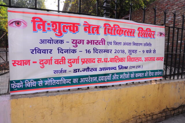 रविवार, दिनांक 16 दिसम्बर 2018 को दुर्गावती दुर्गादास सनातन धर्म इंटर कॉलेज कानपुर में युग भारती, कानपुर एवं जिला अंधता निवारण समिति के सयुंक्त तत्वाधान में नेत्र चकित्सा शिविर आयोजित किया गया |