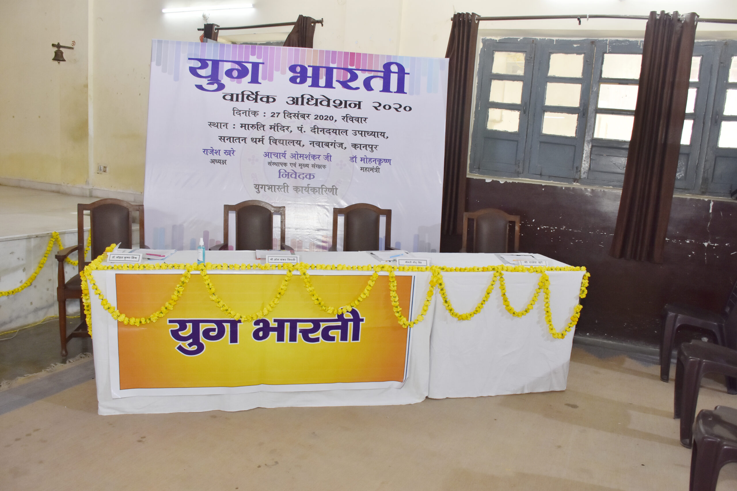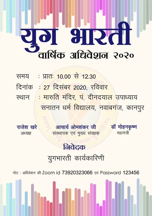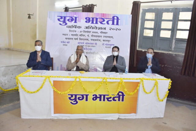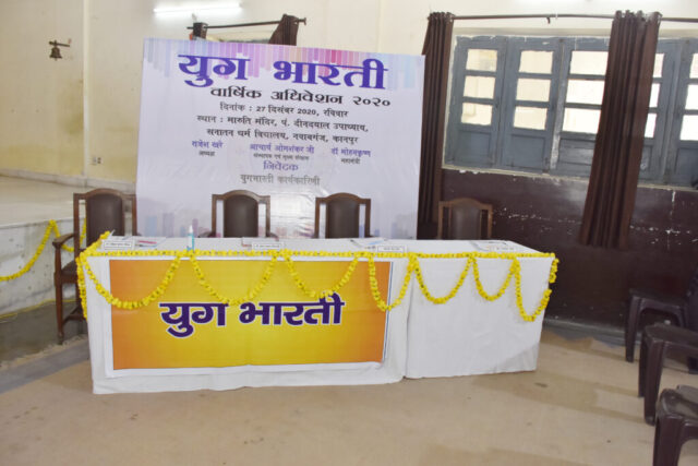 रविवार, 27 दिसंबर 2020, प्रातः 10:00 बजे से अपरान्ह 12:30 बजे, मारुति मन्दिर, पं. दीनदयाल विद्यालय, कानपुर में युगभारती वार्षिक अधिवेशन आयोजित किया गया | कोविड संकट के कारण इस बार अधिवेशन में सदस्य ऑनलाइन माध्यम से भी जुड़ें।